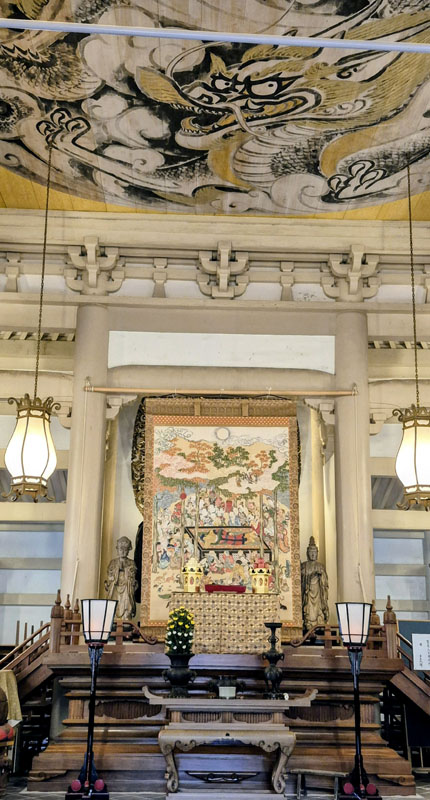 (特筆すべきは)この二月十五日は、お釈迦様が涅槃に入られた日(示寂の日)。大方丈に、大きな『涅槃図』が掲げられていて、十時から『涅槃会』の法要が山内でおつとめされるという日であったことだ。時いたって、開始の鐘がなり、太鼓の音が大きく響きわたる。